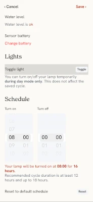 If you own a garden with Bluetooth capabilities like the Smart Garden 9 Pro or the Click & Grow 25, control the light (snooze, change the cycle start or length, ...) directly with the app.