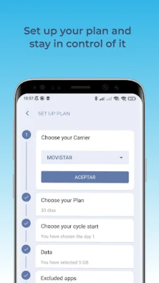 In your profile you can configure your data plan with the limits contracted with your operator. This step is essential for good control of your data consumption.