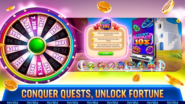 • Choose your slot challenge, crush slot machine missions, spin the prize wheel, and travel across stunning Hard Rock Jackpot Planet destinations to earn bigger social casino rewards, collectible card packs, casino game avatars, and more.
