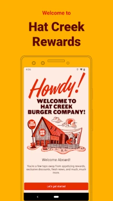 Welcome to the Hat Creek Rewards App. Get access to rewards, special offers and a faster way to get Hat Creek just the way you like it! Find us at any of our 26 locations across Texas. Hat Creek Rewards members can receive points with each purchase to get FREE food and special member benefits.