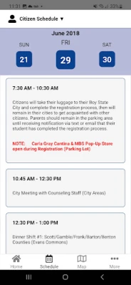 This app will allow participants to access important information throughout the week, including the official schedule, points of interest, speaker information, and the citizenship manual.