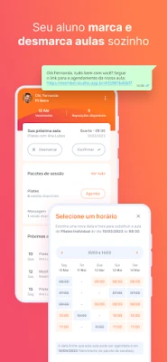 O aluno confirma presença, cancelar ou remarcar a aula sozinho. Tudo de acordo com as regras e prazos que estabelecer e você é notificado sempre que houver alguma mudança. O Acesso do Aluno é muito simples e intuitivo de utilizar: todos seus alunos vão conseguir mexer!
