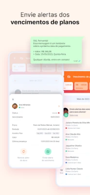 • Acompanhe os planos vencidos e mande mensagens prontas de lembrete sobre final de plano.